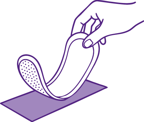 1. Despega el protector menstrual y tira el papel sobre el que está pegado.